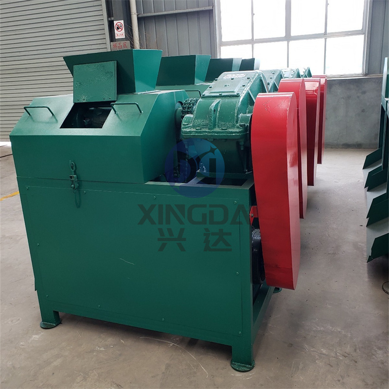 該系列免烘干造粒機采用物理擠壓原理,將粉劑物料加工為所需形狀顆粒,其工作原理是:由電動機驅(qū)動皮帶和 皮帶輪,通過減速機傳遞給主動軸,并通過對開式齒輪與被動軸同步,相向工作。物料從進料斗加入,經(jīng)對輥擠壓成 型,脫模造球,然后落入破碎室,同時隨著傳動軸驅(qū)動的一副鏈條帶動兩根狼牙棒的旋轉(zhuǎn),將擠壓成型但相互粘連的 顆粒分離,從下方篩孔篩下成品顆粒和粉料,經(jīng)過后續(xù)的篩分機實現(xiàn)顆粒物料和回料粉劑的分離,利用皮帶輸送 機使返回料與新料混合,再次進行造粒。隨著電動機連續(xù)轉(zhuǎn)動,物料的不斷進入,實現(xiàn)了批量生產(chǎn)。