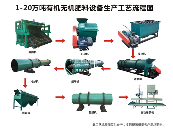 有機肥生產線成套設備主要由發(fā)酵系統(tǒng)、干燥系統(tǒng)、除臭除塵系統(tǒng)、粉碎系統(tǒng)、配料系統(tǒng)、混合系統(tǒng)、造粒系統(tǒng)、冷卻烘干系統(tǒng)、篩分系統(tǒng)和成品包裝系統(tǒng)組成。