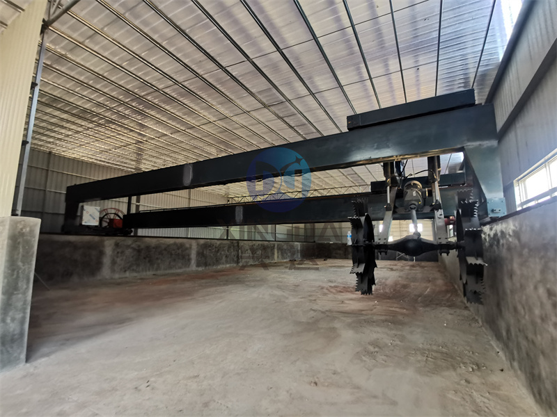 大跨度輪盤翻拋機(jī)正客戶現(xiàn)場試機(jī)運(yùn)行:輪式翻拋機(jī)生產(chǎn)量較大,主要適用于大型有機(jī)肥生產(chǎn)線。固定式輪盤翻拋機(jī)適用于大跨度,高深度的畜禽糞便、污泥垃圾、糖廠濾泥、糟渣餅粕和秸桿鋸屑等有機(jī)廢棄物的發(fā)酵翻堆,廣泛應(yīng)用于有機(jī)肥廠、復(fù)混肥廠、污泥垃圾廠、園藝場以及雙孢菇種植廠等的發(fā)酵腐熟和去除水分作業(yè)。