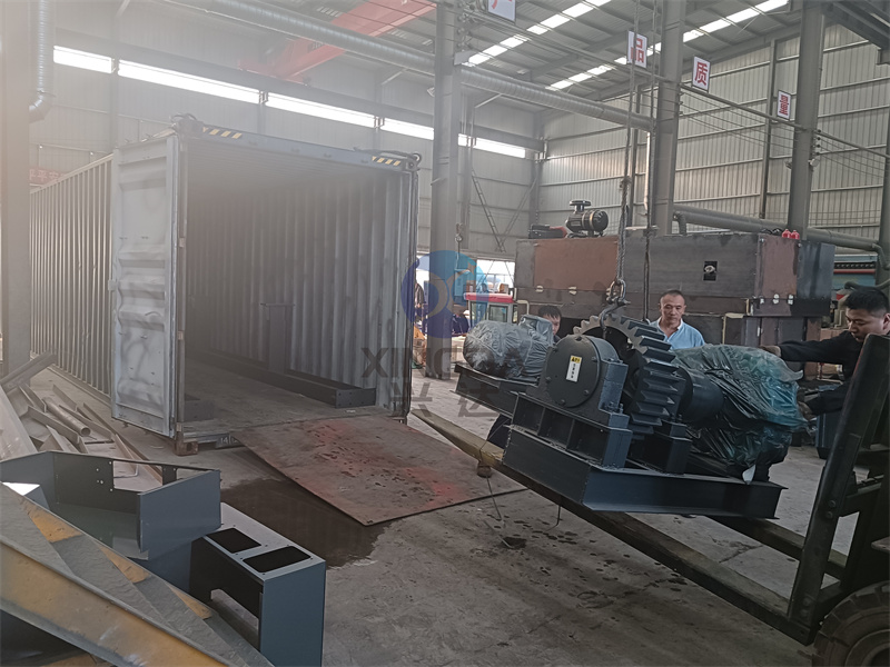 準備裝箱發(fā)出有機肥設備臥式攪拌機與燃燒機一起裝箱準備出口
