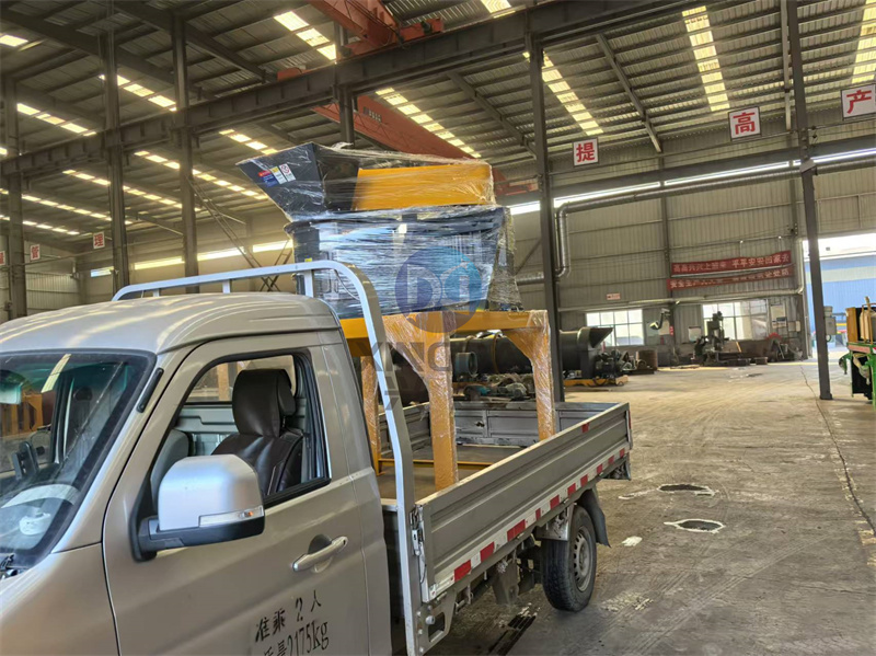 一臺(tái)已經(jīng)包裝好的60型有機(jī)肥設(shè)備立式粉碎機(jī)正在裝車: