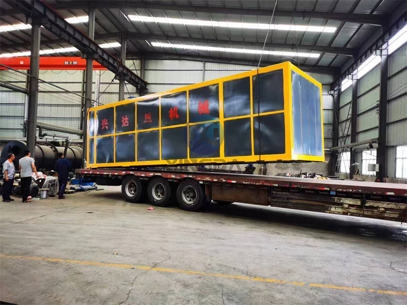 中型有機(jī)肥生產(chǎn)線設(shè)備大容量有機(jī)肥發(fā)酵罐正在裝車進(jìn)行中