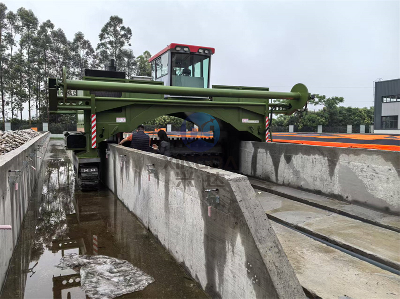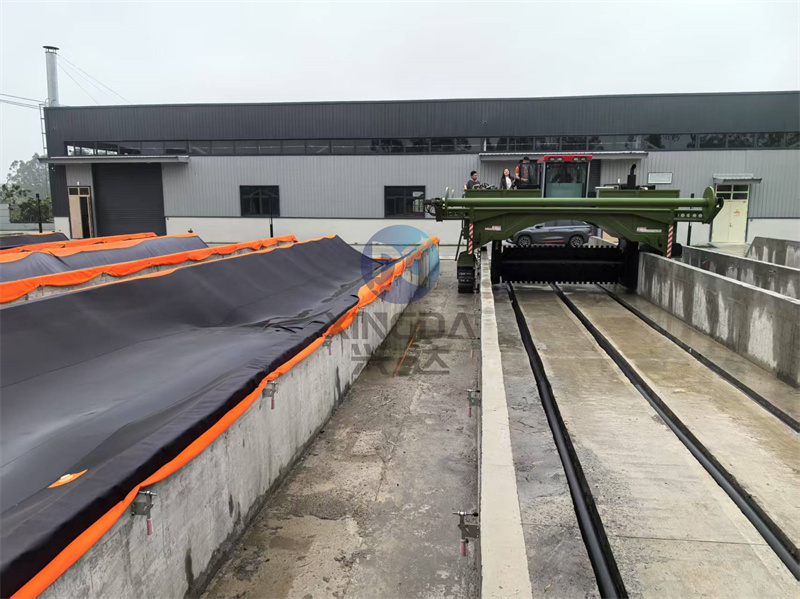 使用現(xiàn)場(chǎng):完成安裝的5米寬的液壓履帶覆膜翻拋機(jī)準(zhǔn)備開(kāi)始啟動(dòng):