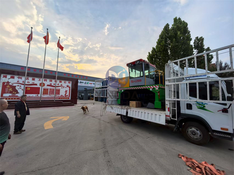 2500型有機(jī)肥翻拋發(fā)酵設(shè)備履帶翻拋機(jī)正在裝車(chē)出發(fā)銅陵:河南興達(dá)機(jī)械公司是專(zhuān)注于生產(chǎn)有機(jī)肥設(shè)備的廠家,種類(lèi)多,型號(hào)全。履帶翻堆機(jī)屬于地面堆放發(fā)酵設(shè)備,是目前較節(jié)省土建、人力資源的一種制肥模式。需將物料堆成長(zhǎng)形條垛由翻堆機(jī)定時(shí)對(duì)物料實(shí)施攪拌、破碎,在好氧條件下進(jìn)行有機(jī)物的分解。
