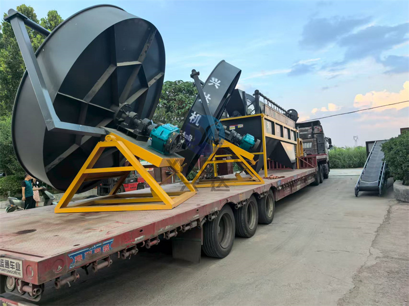 出貨大連:顆粒有機肥生產(chǎn)線設(shè)備2臺圓盤造粒機與立式粉碎機準(zhǔn)備出貨: