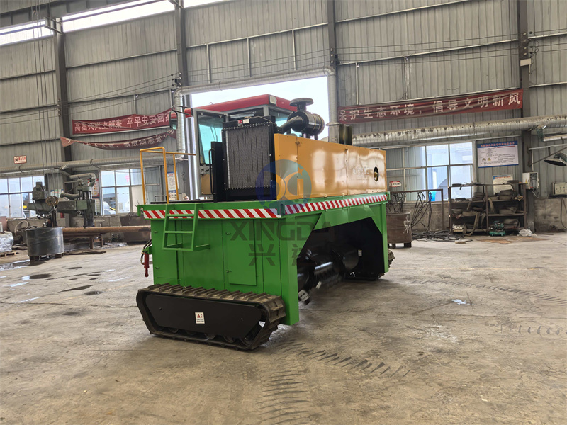 前往蚌埠的一臺加工好的有機肥履帶翻拋設備準備開始裝車:履帶翻拋機是整套有機肥生產線中的一款有機肥翻堆設備。在有機肥生產線中擔當起到翻拋物料的作用。 履帶式翻堆機,水分大的物料原地不會打滑,爬窩現象,終身不會更換輪胎.拉桿操作原地180°轉彎調頭,淘汰了方向盤式原地無法調頭的煩惱,節(jié)省場地,人工柴油,國內新型產品.