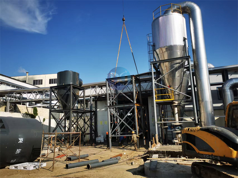 濱州安裝現(xiàn)場::有機肥設備滾筒式烘干機正在進行安全有序的安裝工作