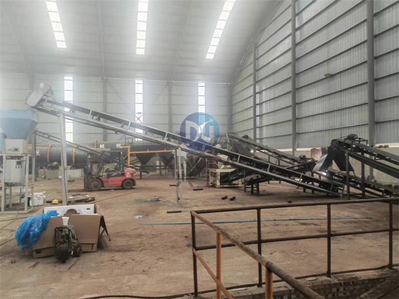 甘肅年產(chǎn)3萬噸有機(jī)肥顆粒生產(chǎn)線主要是將原料發(fā)酵腐熟以后含水量約30%-35%的有機(jī)廢棄物送入粉碎篩分,后與粘結(jié)劑以及需配比的其他成分如:氮磷鉀等元素使所含礦物元素達(dá)到所需標(biāo)準(zhǔn)(總養(yǎng)分含量低于15%),然后由攪拌機(jī)進(jìn)行攪拌混合,經(jīng)充分混合后的物料由皮帶輸送機(jī)均勻連續(xù)的喂入造粒機(jī)制粒,經(jīng)拋光整形機(jī)拋圓成球狀顆粒,出來后用烘干機(jī)進(jìn)行低溫大風(fēng)量烘干(≤65℃)后進(jìn)行冷卻、篩分、包膜,合格產(chǎn)品由皮帶輸送到成品料倉,經(jīng)電腦定量包裝系統(tǒng)計(jì)量,包裝入庫,不合格的返回粉碎機(jī)進(jìn)行粉碎再造粒。