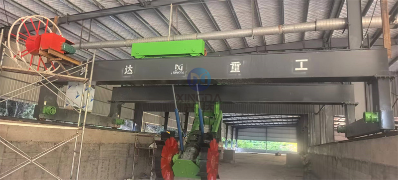五、如果是液壓升降式翻堆機,則可用選用2-4米的槽式發(fā)酵翻堆機.在翻堆期間為了盡量避免秸稈、木屑等輔料,纏繞翻堆機齒輪,影響翻拋齒正常作業(yè),使用專用有機肥生產(chǎn)線粉碎設(shè)備半濕物料粉碎機進行粉碎.